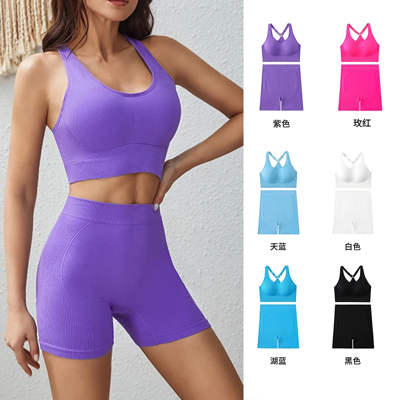 Ladies Active Wear Sports Bra and Exercise Shorts Fitness Set Breathable and Lightweight Elastic Quick Dry Yoga 2 Piece Yoga Set